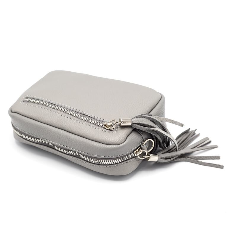 イタリア製 牛本革 ショルダーバッグ レディース グレー
